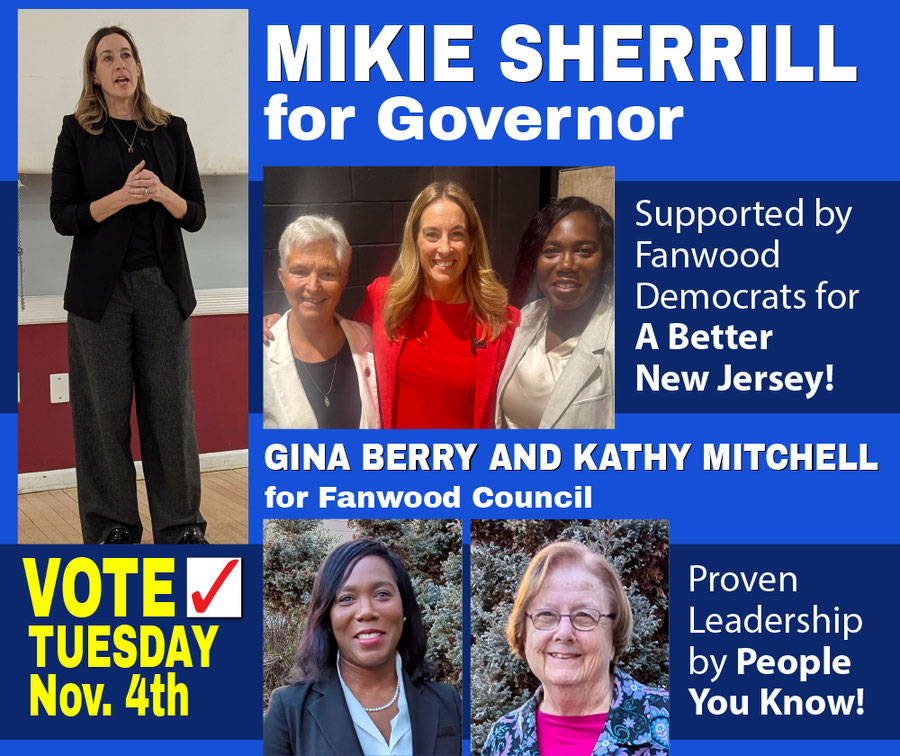 The Fanwood Democratic Committee joins the Sherrill campaign in urging everyone to vote. Despite the noise from the White House about mail-in voting, it remains alive and legal in New Jersey, which also has early voting starting October 25th. Of course, you can vote in person on Election Day, Tuesday, November 4th.
